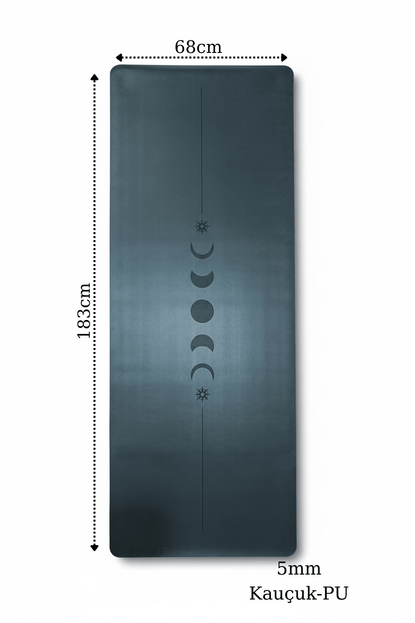 Yoga Matı Kaydırmaz Doğal Kauçuk 5mm Siyah Ay Desenli